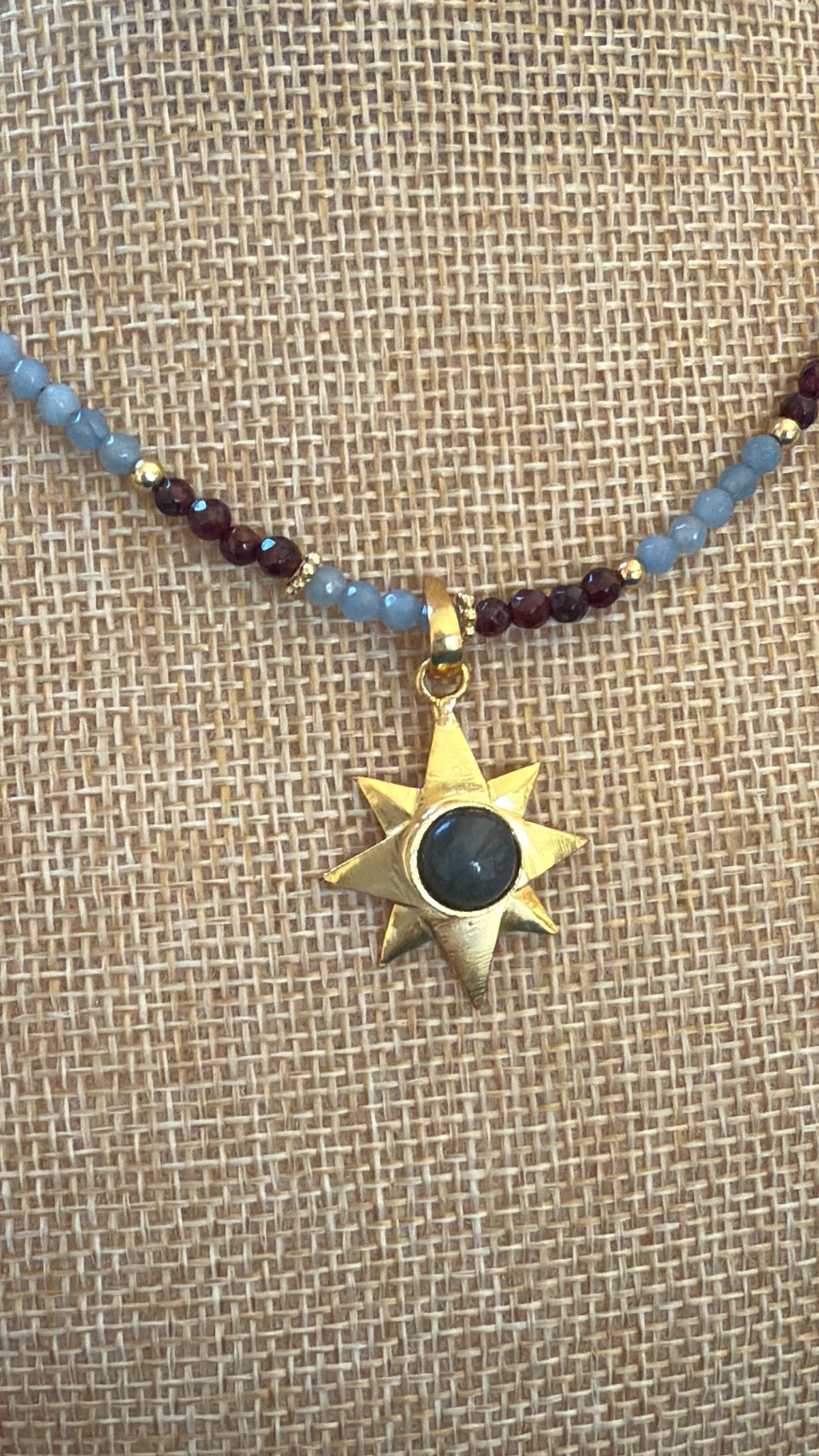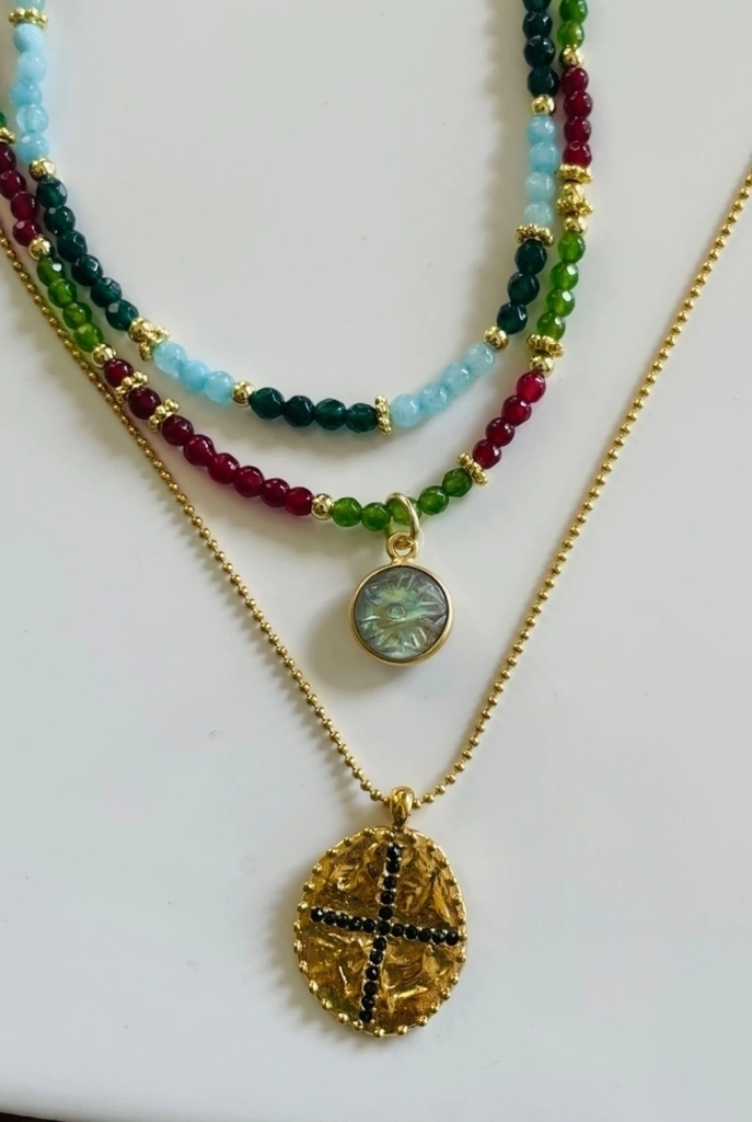 Collar de cristal de jade con cuentas bañadas en oro 18 k. En 4 varaintes. rojo +verde. celeste +verde, violeta + rosa, gris+rosa