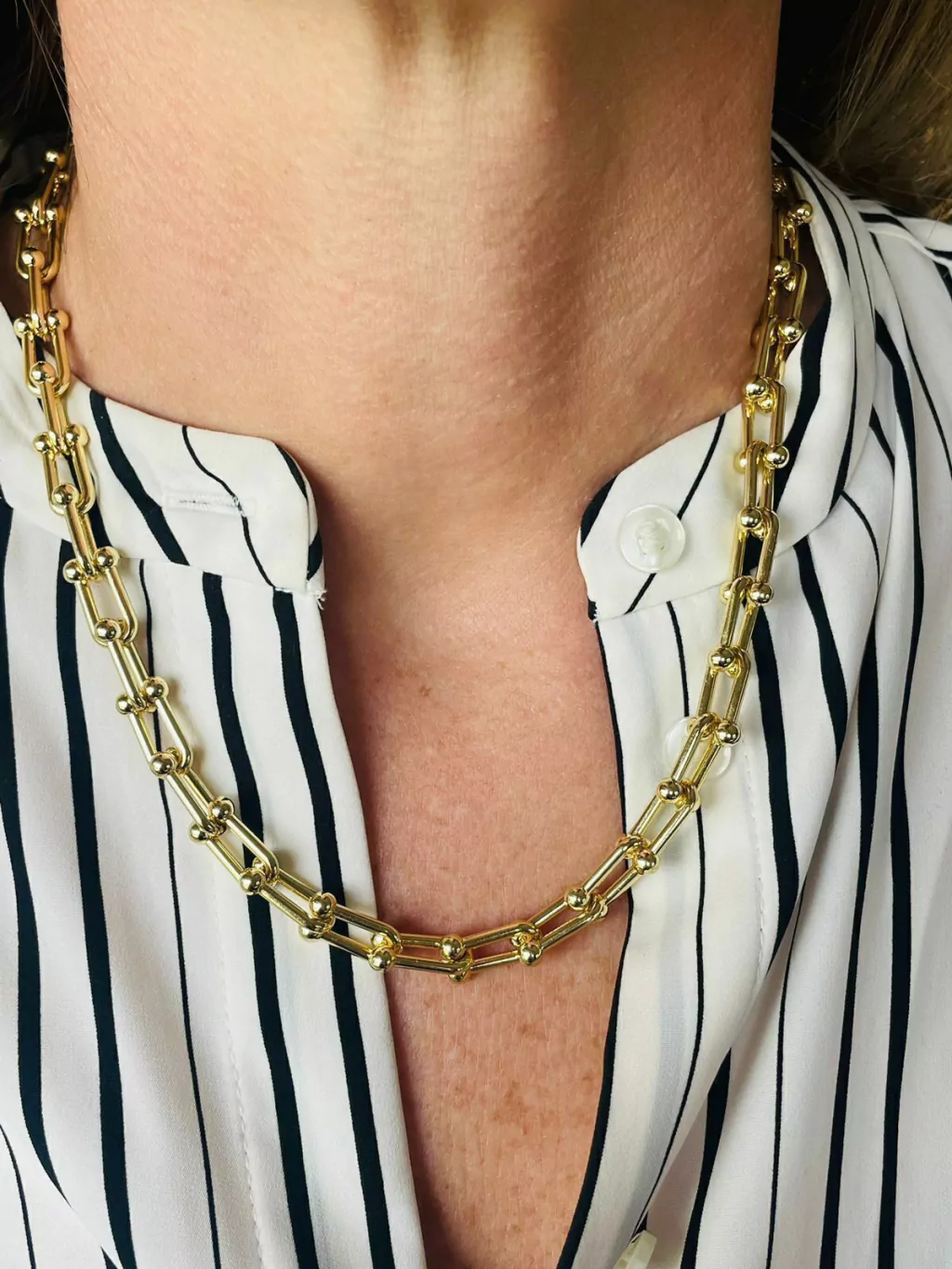 Collar de cadena con eslabones grandes, de brass bañado en oro, se puede elegir en 3 medidas, por otra medida escribinos.