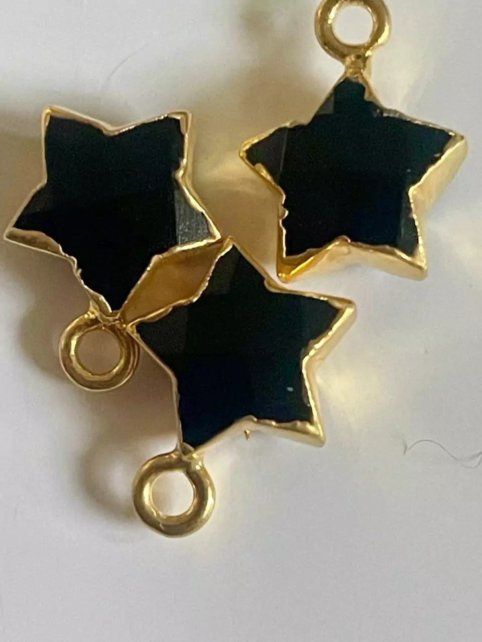 Un hermoso dije en forma de estrella, elaborado en piedra semipreciosa y enmarcado con laterales de brass bañado en oro.